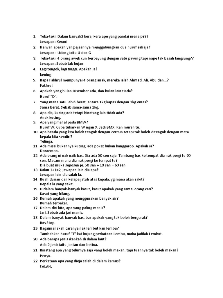 Teka-Teki Tebakan Lucu. 18072020 Bahkan ada beberapa misalnya enam hewan berikut ini. Ape beza dengan dua huruf ni Il.