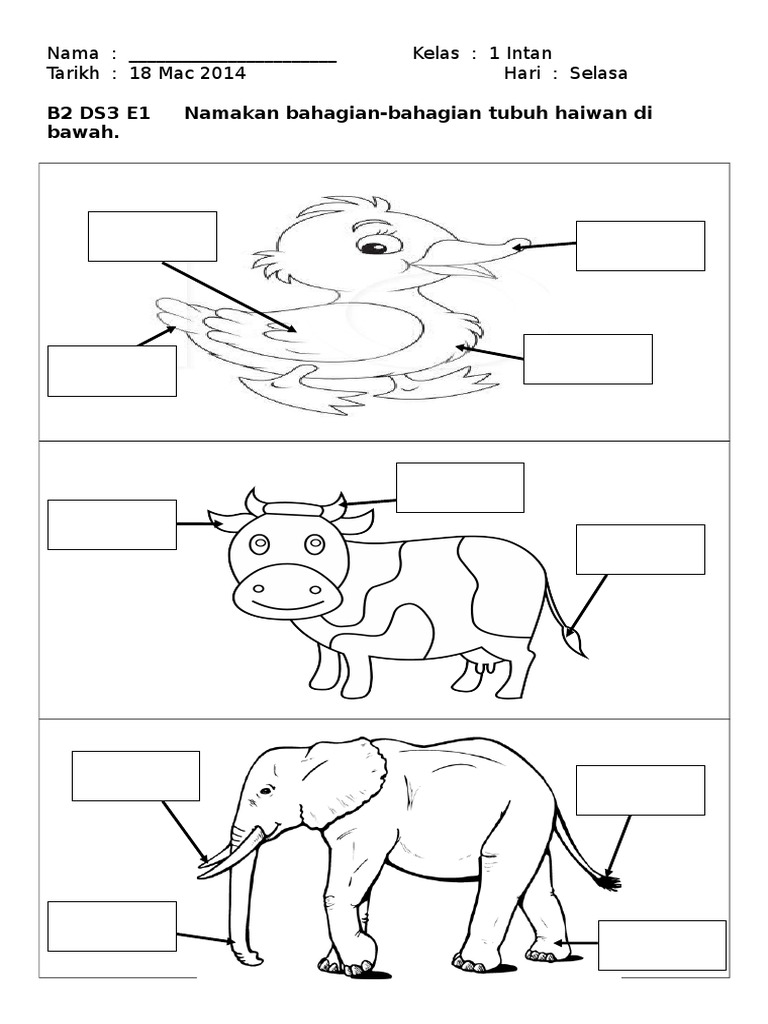 Membuat penerokaan dan melabelkan bahagian tubuh badan haiwan. Link to this worksheet. Murid dapat mengenali kitaran hidup haiwan liar dan mengenali habitatnya.